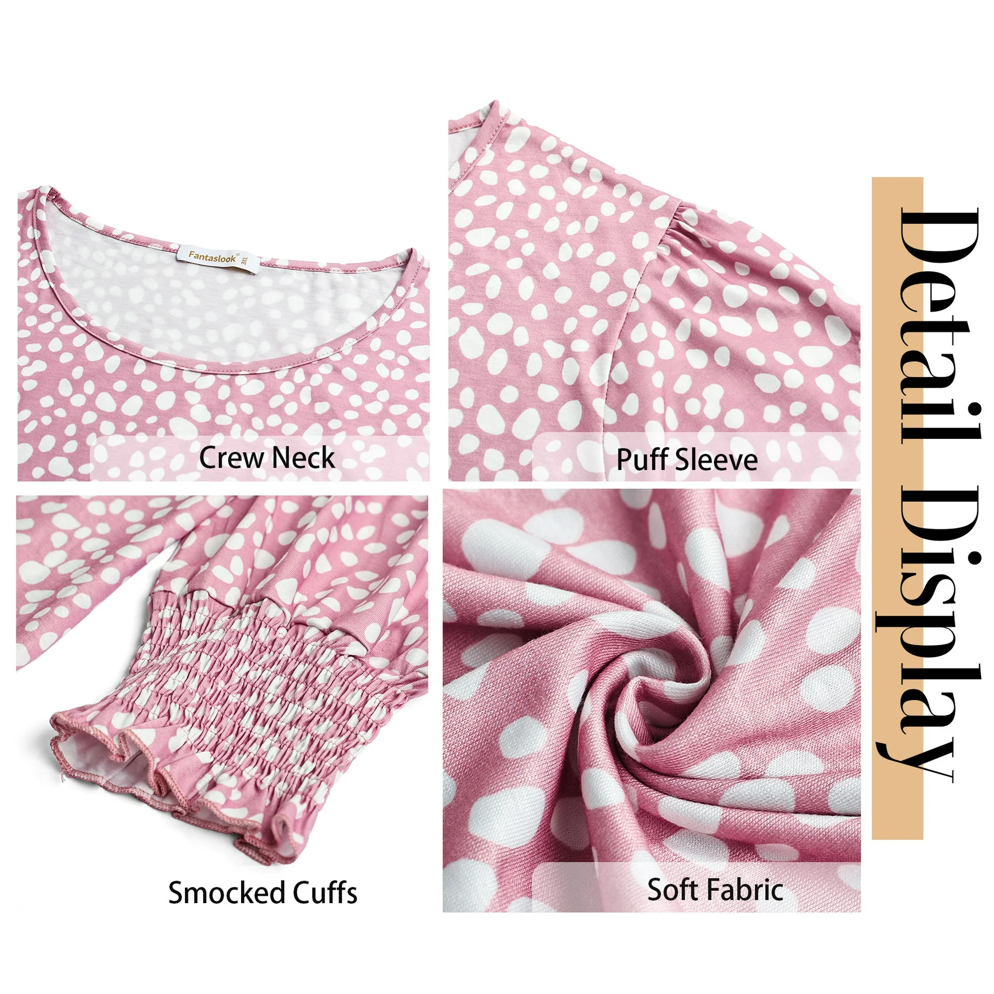 Fantaslook Blouses for Women Dressy Casual 3/4 Length Sleeve Womens Tops with Smocked Cuffs Fashion Shirts