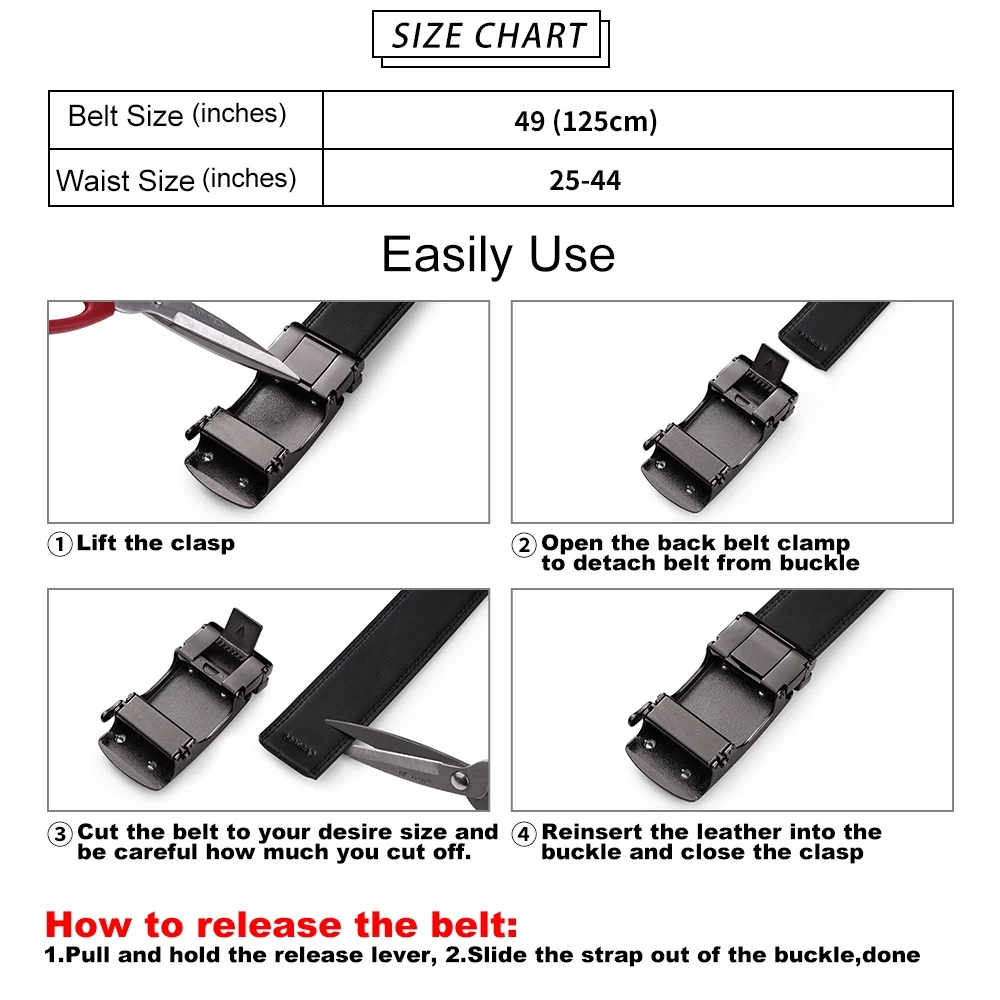 • 【Trim to Exact Fit】Easy removable buckle allows you to cut the belt to your ideal size. For a great fit, please trimmed longer than your waist size. Complete your look with our comfortable-fit men’s belts!